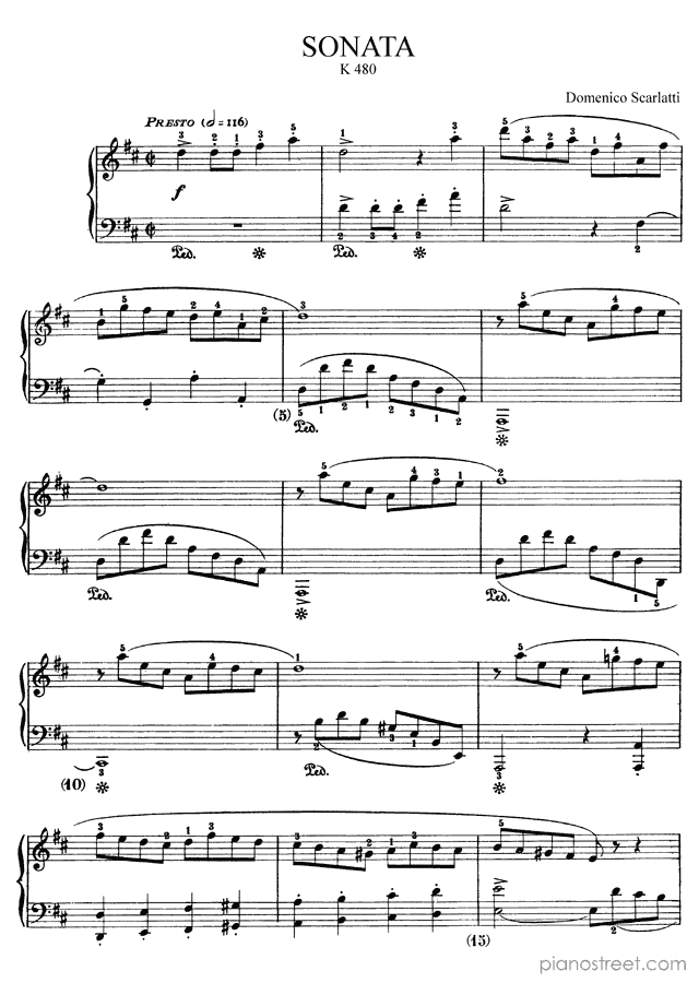 Baroque piano sheet music by Domenico Scarlatti to download and print instantly: Sonata K. 480 in the key of . Level 6, compositional type: Sonata