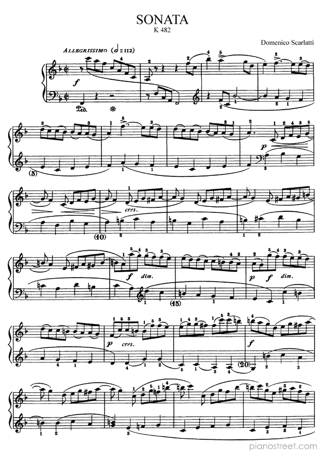 Domenico Scarlatti: Sonata K. 482 in F Major from Sonatas - piano sheet music to print instantly. This piece is level 6 and was composed during the Baroque period.