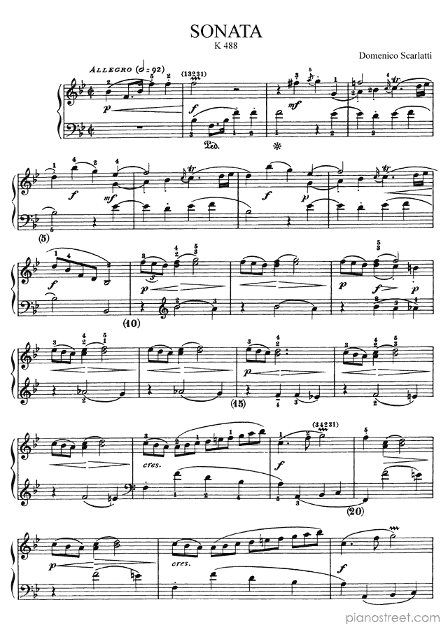 Downloadable piano sheet music from Sonatas by Domenico Scarlatti to print: Sonata K. 488 in B-flat Major