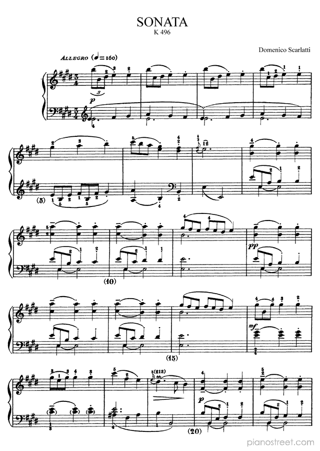 DOWNLOAD: Domenico Scarlatti - Sonata K. 496 in E Major ( from Sonatas by Scarlatti). Piano sheet music to print immediately or to view in mobile devices.