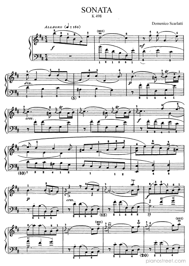 Downloadable piano sheet music from Sonatas by Domenico Scarlatti to print: Sonata K. 498 in B Minor