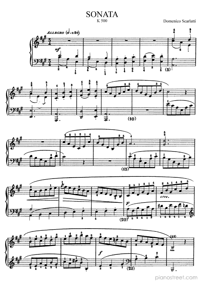 Baroque piano sheet music by Domenico Scarlatti to download and print instantly: Sonata K. 500 in the key of . Level 6, compositional type: Sonata