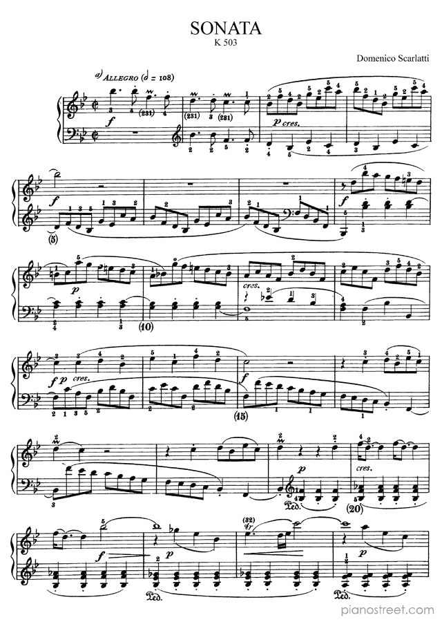 Scarlatti: Sonata K. 503 in B-flat Major . DOWNLOAD piano sheet music from Piano Street digital sheet music library.