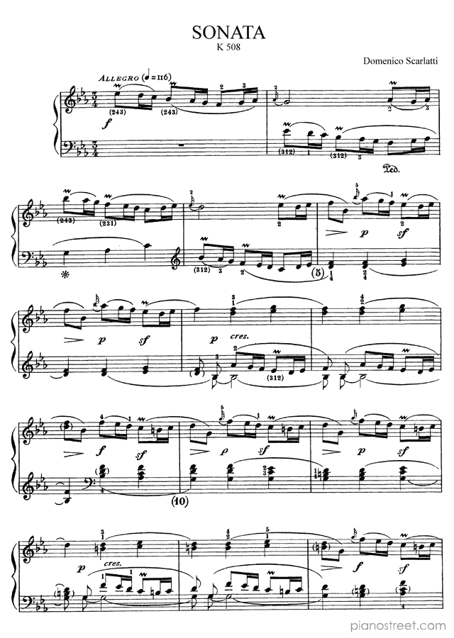 Downloadable piano sheet music from Sonatas by Domenico Scarlatti to print: Sonata K. 508 in E-flat Major