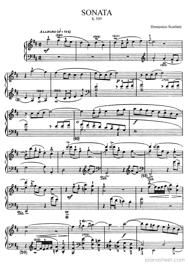 Classical piano sheet music by Scarlatti to download: Sonata K. 509 in the key of This piece has difficulty level 5 in the category Sonata