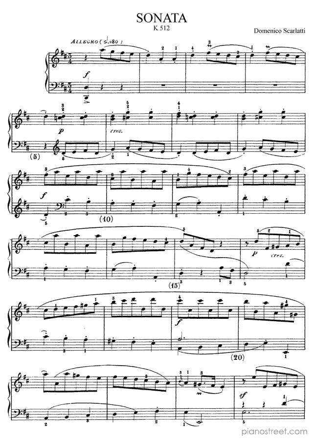 Domenico Scarlatti: Sonata K. 512 in D Major from Sonatas - piano sheet music to print instantly. This piece is level 6 and was composed during the Baroque period.
