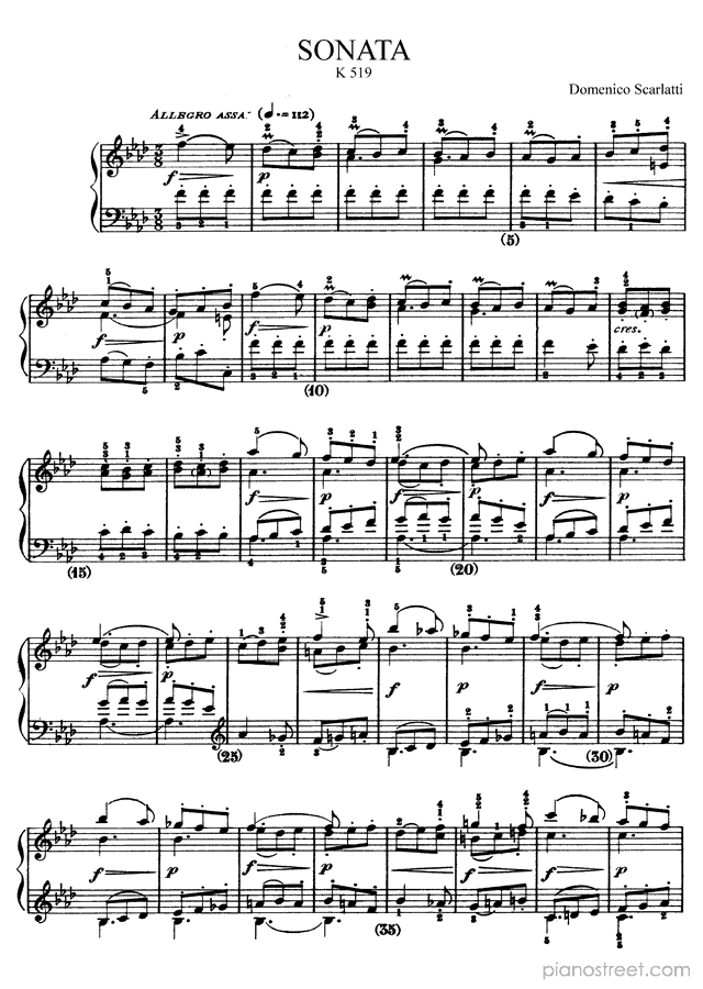 Classical piano sheet music by Scarlatti to download: Sonata K. 519 in the key of This piece has difficulty level 6 in the category Sonata