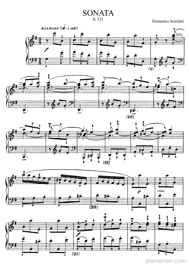 Scarlatti: Sonata K. 523 in G Major . DOWNLOAD piano sheet music from Piano Street digital sheet music library.