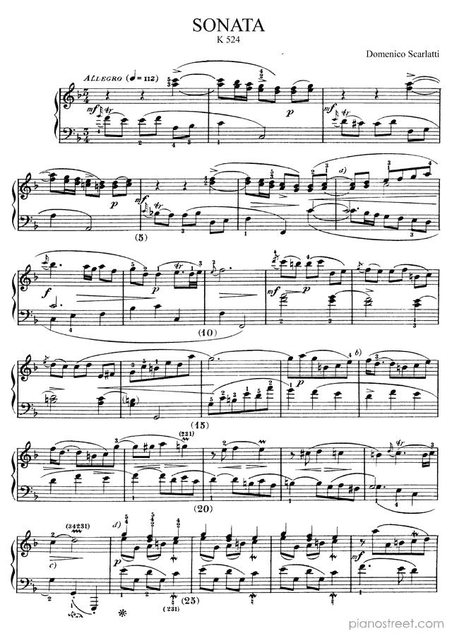 Sonata in F Major K. 524 by Domenico Scarlatti. Sheet music and recordings of thousands of piano pieces by Domenico Scarlatti and many other famous composers to view in your digital device, print out or listen to.
