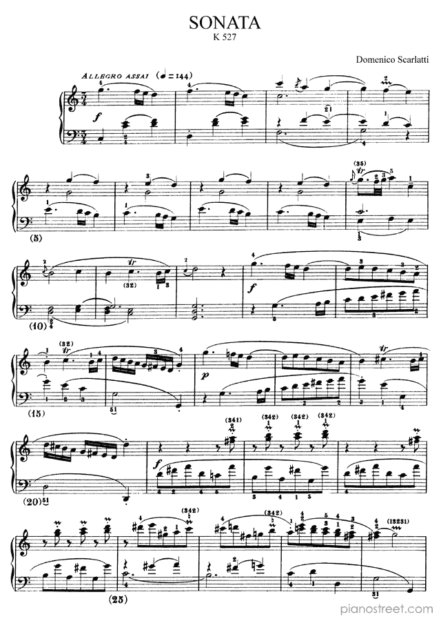 DOWNLOAD Sonata in C Major K. 527 by Domenico Scarlatti. High quality classical piano scores from the Piano Street sheet music library.