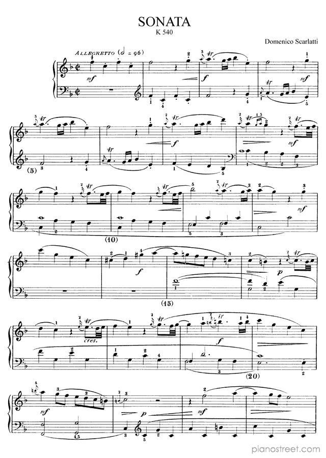 Domenico Scarlatti: Sonata K. 540 in F Major from Sonatas - piano sheet music to print instantly. This piece is level 5 and was composed during the Baroque period.