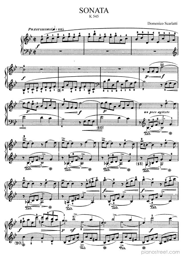DOWNLOAD Sonata in B-flat Major K. 545 by Domenico Scarlatti. High quality classical piano scores from the Piano Street sheet music library.
