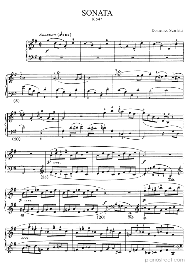 Classical piano sheet music by Scarlatti to download: Sonata K. 547 in the key of This piece has difficulty level 5 in the category Sonata