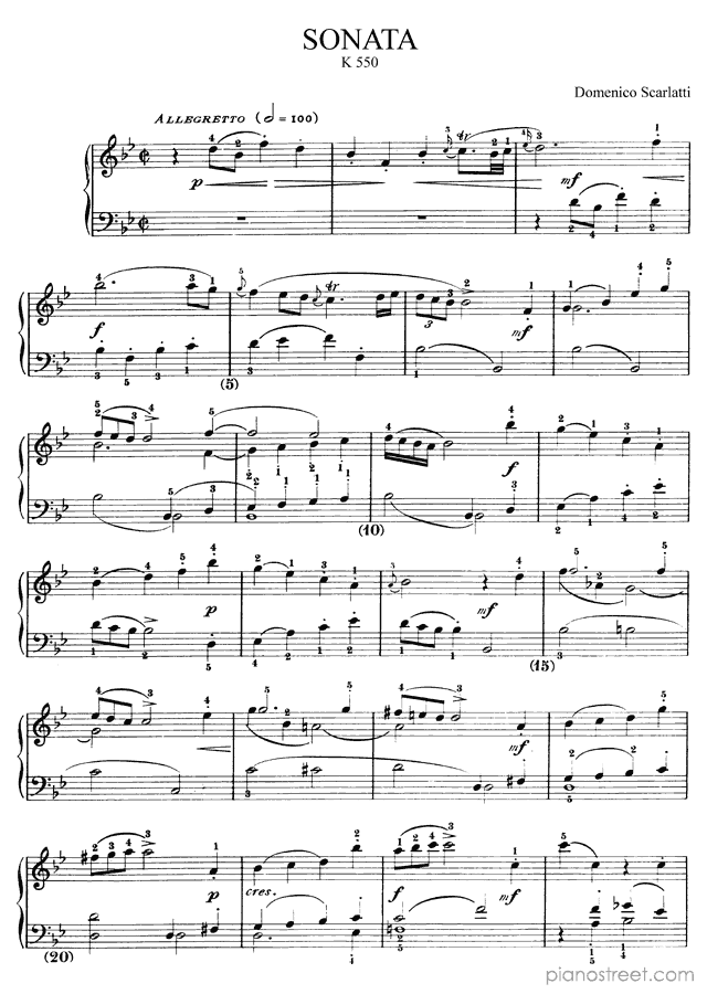 Domenico Scarlatti: Sonata K. 550 in B-flat Major from Sonatas - piano sheet music to print instantly. This piece is level 5 and was composed during the Baroque period.