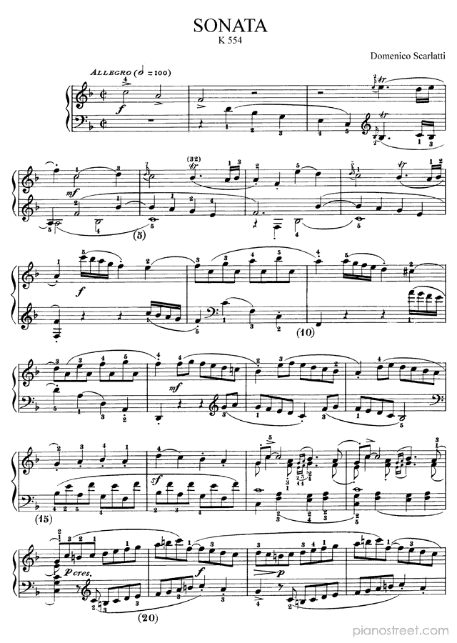 DOWNLOAD: Domenico Scarlatti - Sonata K. 554 in F Major ( from Sonatas by Scarlatti). Piano sheet music to print immediately or to view in mobile devices.