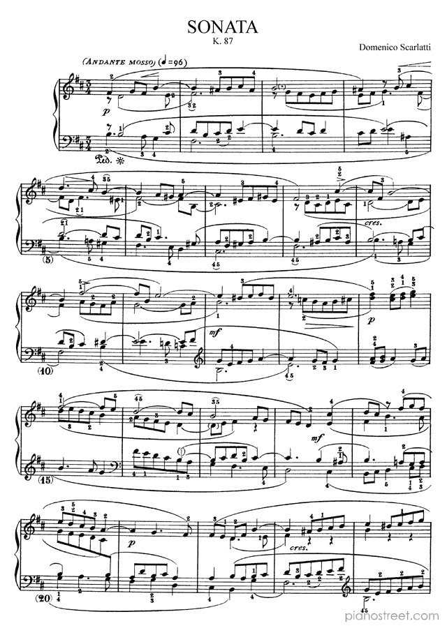 Downloadable piano sheet music from Sonatas by Domenico Scarlatti to print: Sonata K. 87 in B Minor