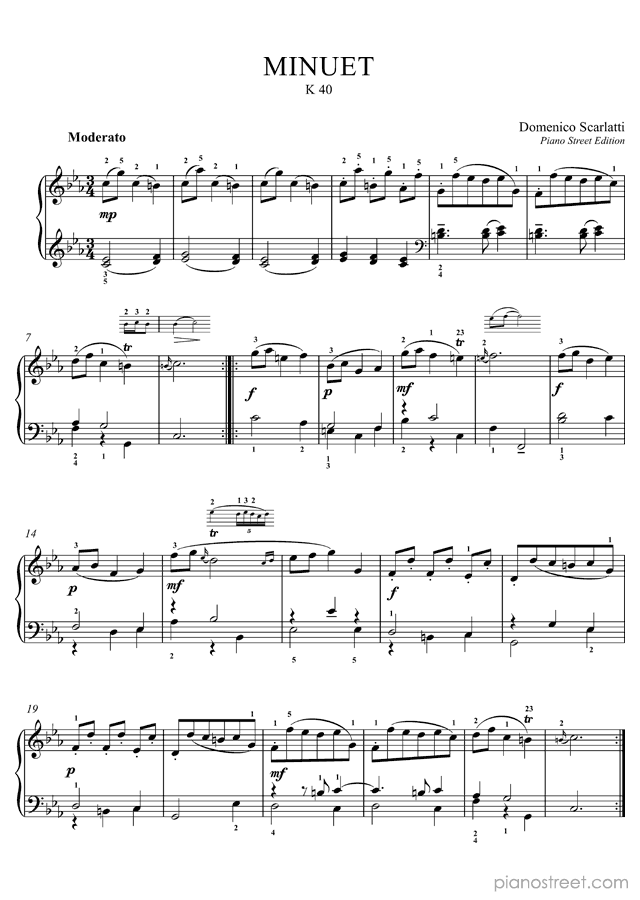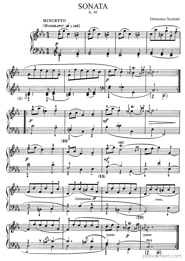 Sonata (Minuetto) in C Minor - K. 40 is a piano piece by the baroque composer Domenico Scarlatti who lived between the years 1685 and 1757.
