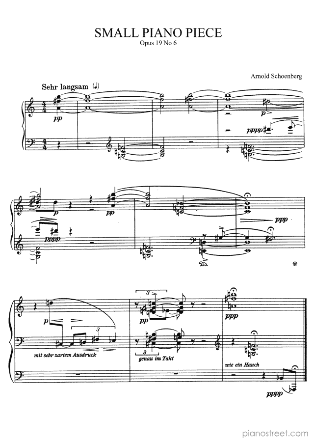DOWNLOAD: Arnold Schoenberg - Piano Piece Op. 19 No. 6 ( from Six Little Piano Pieces by Schoenberg). Piano sheet music to print immediately or to view in mobile devices.