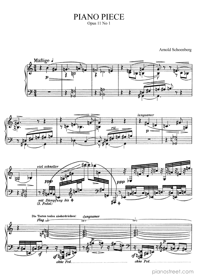 Downloadable piano sheet music from Three Piano Pieces by Arnold Schoenberg to print: Piano Piece Op. 11 No. 1 (published in 1909)