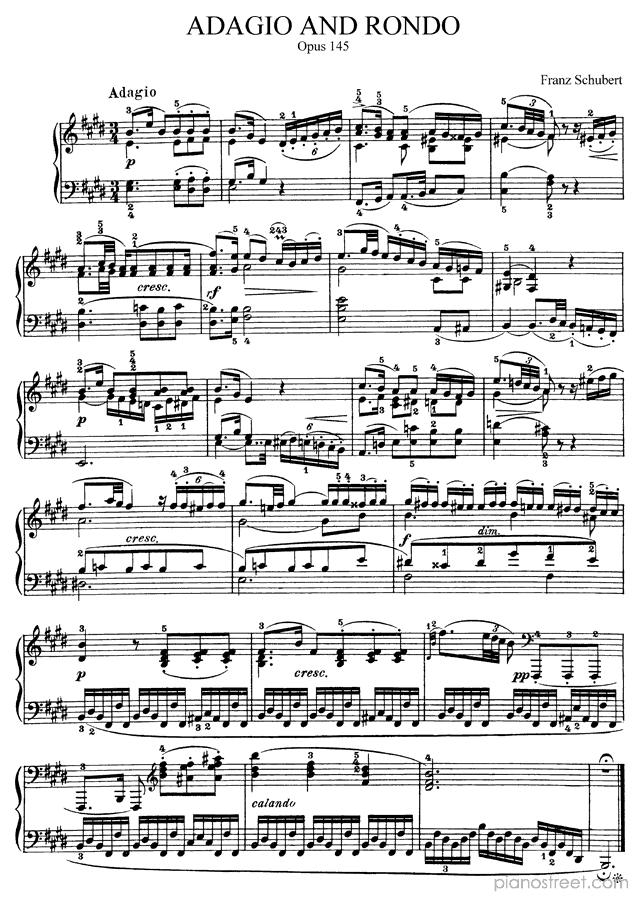 Franz Schubert: Adagio and Rondo Op. 145 in E Major - piano sheet music to print instantly. This piece is level 8+ and was composed during the Early Romantic period.
