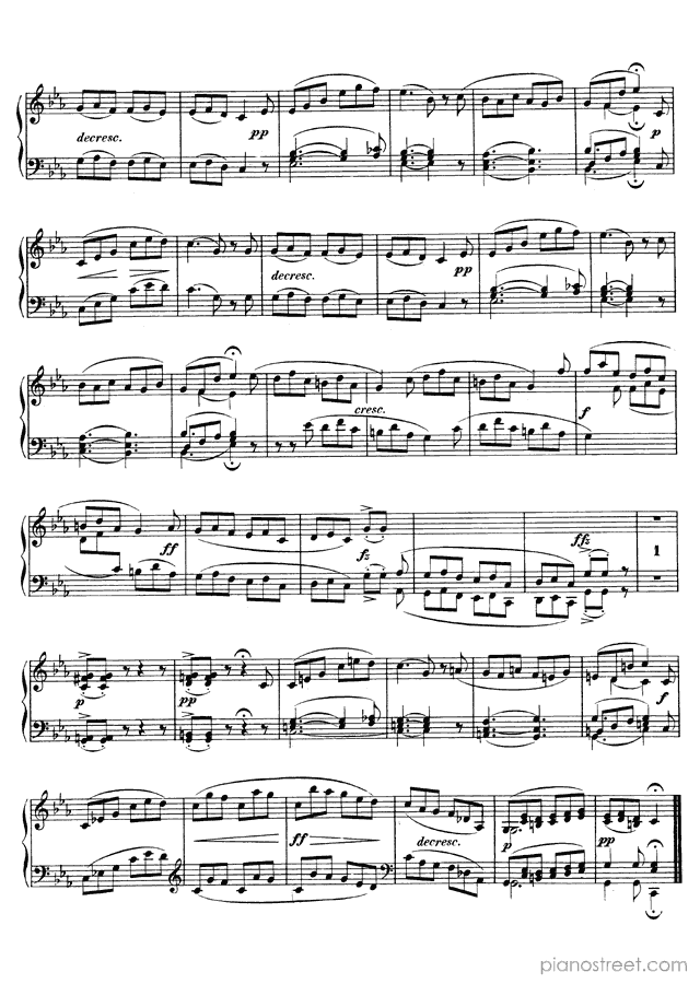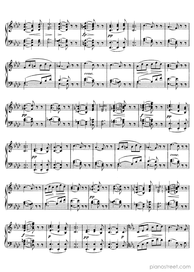 This piece is composed by Franz Schubert and was published in 1827. Title: Allegretto (D. 915), in C Minor . The difficulty level is around ABRSM grade 7 and it belongs to the Early Romantic period.