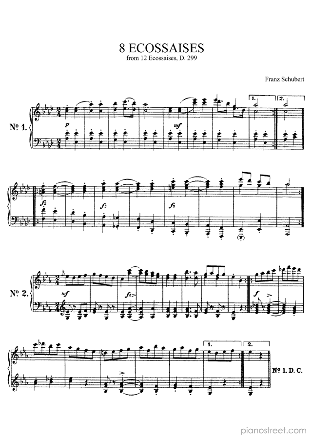 DOWNLOAD: Franz Schubert - 12 Ecossaises D. 299 ( from Dances by Schubert). Piano sheet music to print immediately or to view in mobile devices.