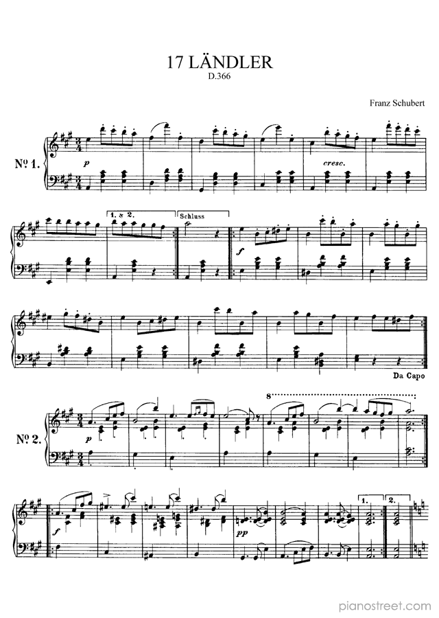 17 Ländler - D. 366 is a piano piece by the early romantic composer Franz Schubert who lived between the years 1797 and 1828.