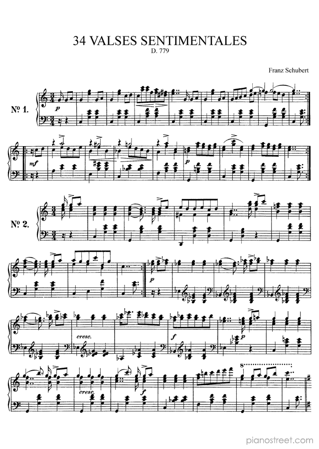 DOWNLOAD 34 Valses Sentimentales D. 779 by Franz Schubert (published in 1823) . High quality classical piano scores from the Piano Street sheet music library.