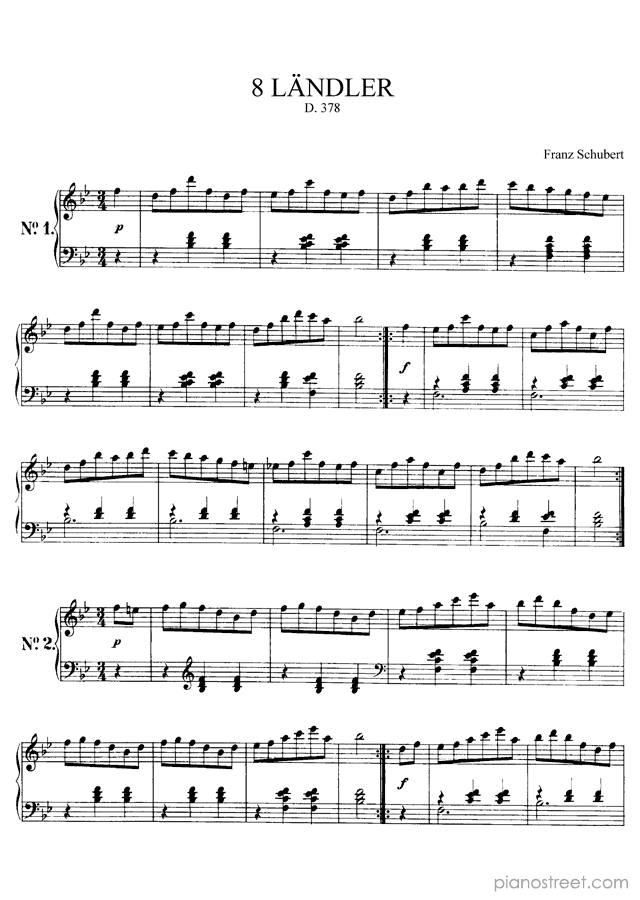 DOWNLOAD: Franz Schubert - 8 Ländler D. 378 in B-flat Major ( from Dances by Schubert). Piano sheet music to print immediately or to view in mobile devices.