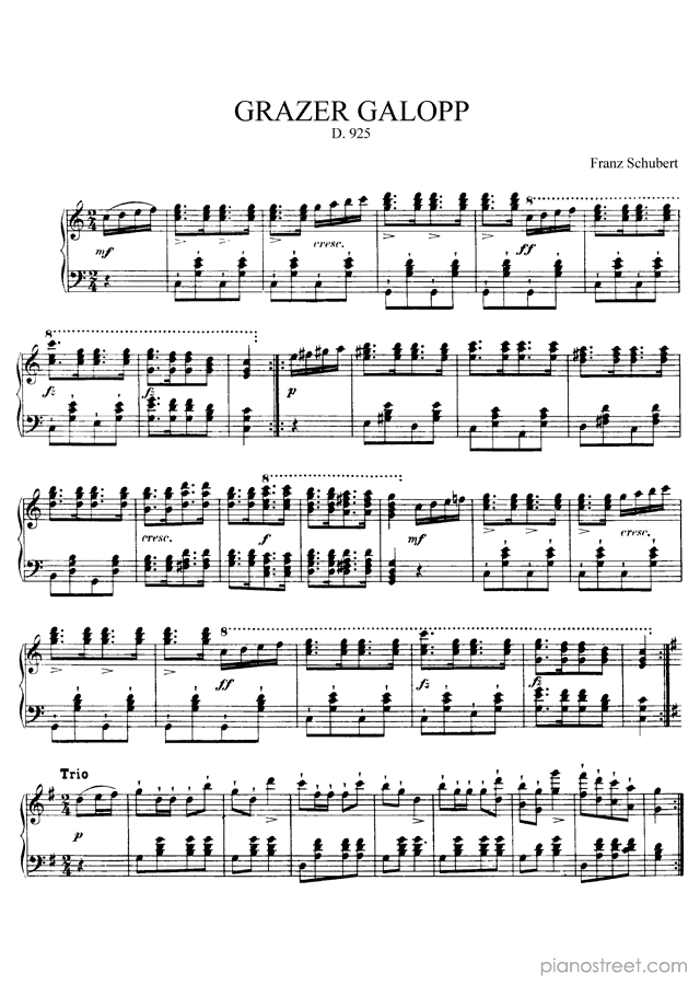 Schubert: Grazer Galopp D. 925 in C Major (published in 1827) . DOWNLOAD piano sheet music from Piano Street digital sheet music library.