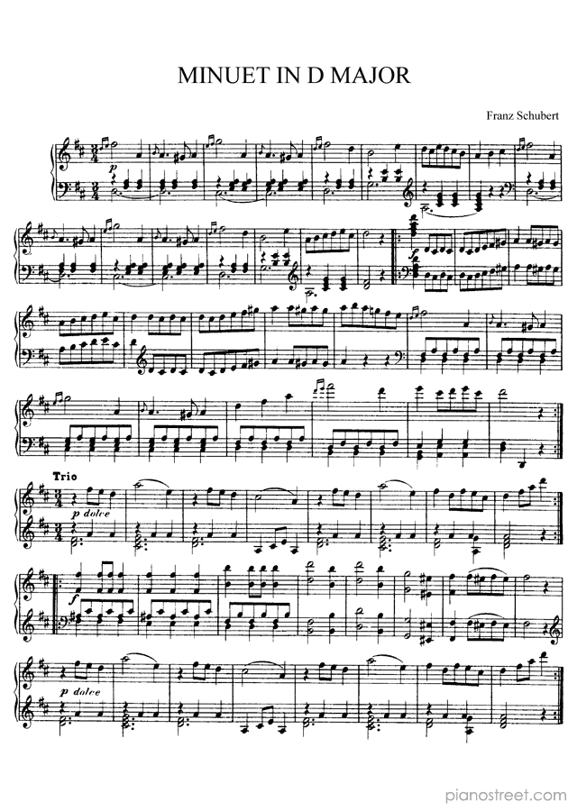 Schubert: Minuet in D Major . DOWNLOAD piano sheet music from Piano Street digital sheet music library.
