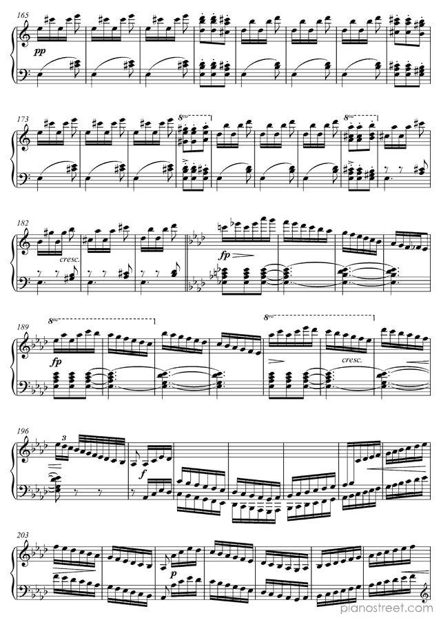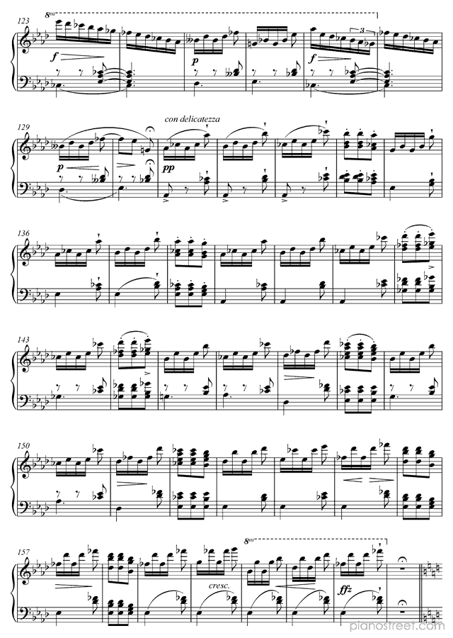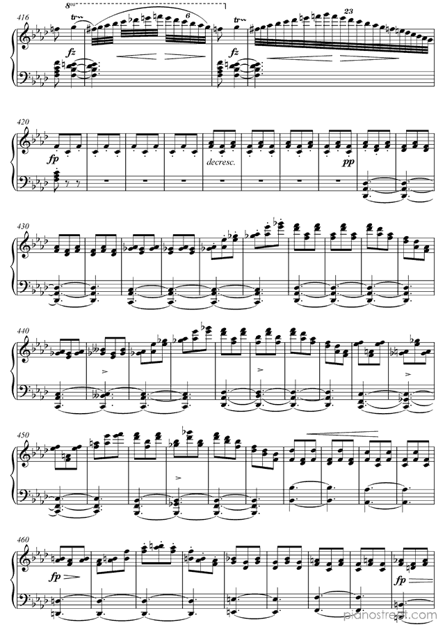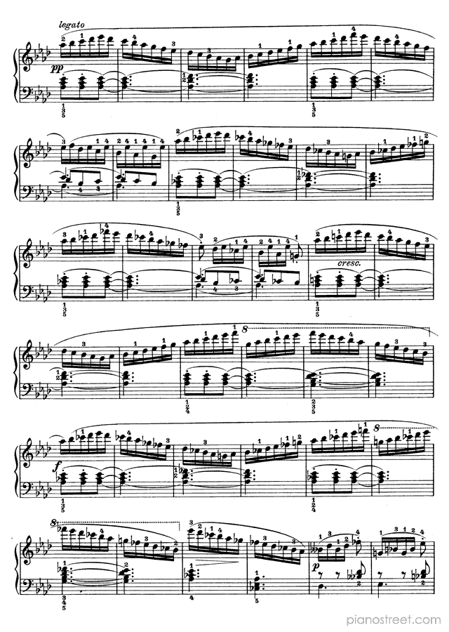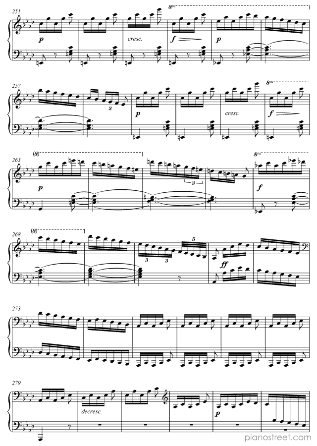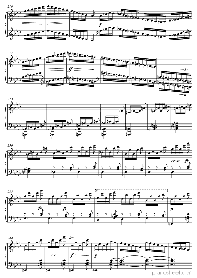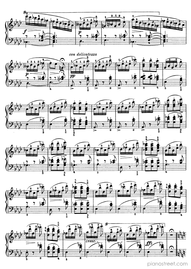 The final Impromptu, in f minor just like the first one of the opus, comes across like some sort of wild, rhythmically disorienting dance, making clever use of unexpected accents and hemiolas to achieve its aims. Not for the faint of heart, it demands a refined technique capable of rapid and clear passage work, and even the occasional double thirds. A middle section explores some foreign keys in a playfully dance-like fashion, before transitioning back to the fiery first section once more. A slightly calmer section seems to slowly extinguish the piece, but a final, wild coda erupts, ending the opus with a decisive f minor scale, diving like a bird of prey from the highest into the lowest registers of the piano.Background
