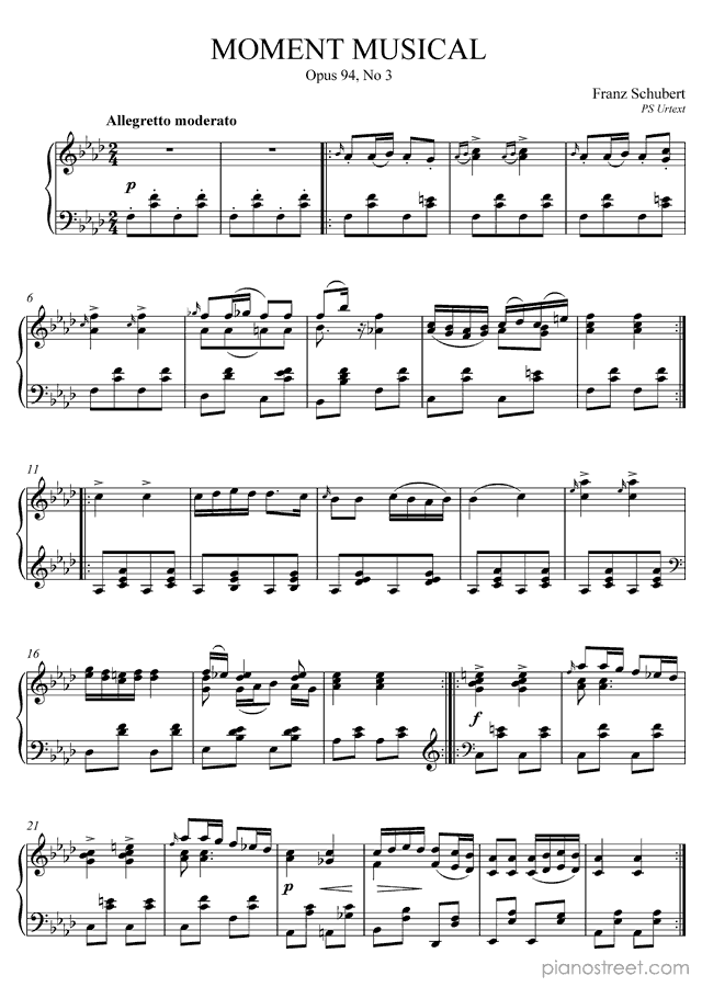 Moment Musical in F Minor - Op. 94 No. 3 D. 780 is a piece by the early romantic composer Franz Schubert.