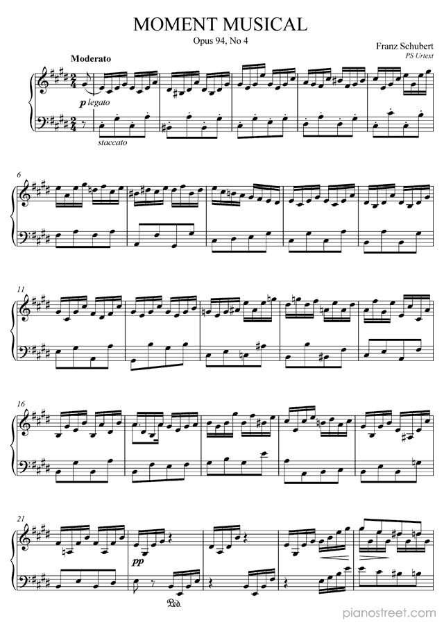 Moment Musical in C-sharp Minor - Op. 94 No. 4 D. 780 is a piano piece by the early romantic composer Franz Schubert who lived between the years 1797 and 1828.