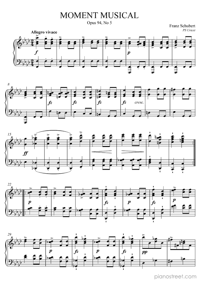 DOWNLOAD: Franz Schubert - Moment Musical Op. 94 No. 5 D. 780 in F Minor ( from Moments Musicaux by Schubert). Piano sheet music to print immediately or to view in mobile devices.