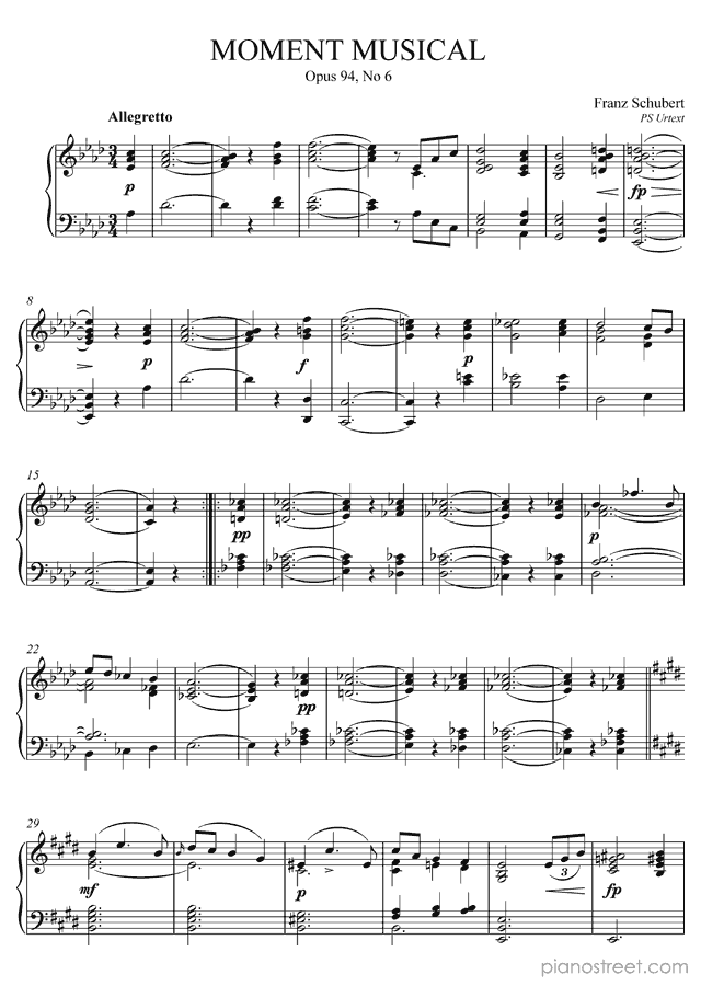 DOWNLOAD Moment Musical in A-flat Major Op. 94 No. 6 D. 780 by Franz Schubert (published in 1828) . High quality classical piano scores from the Piano Street sheet music library.