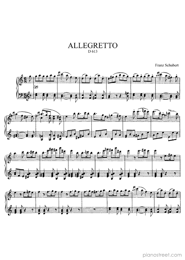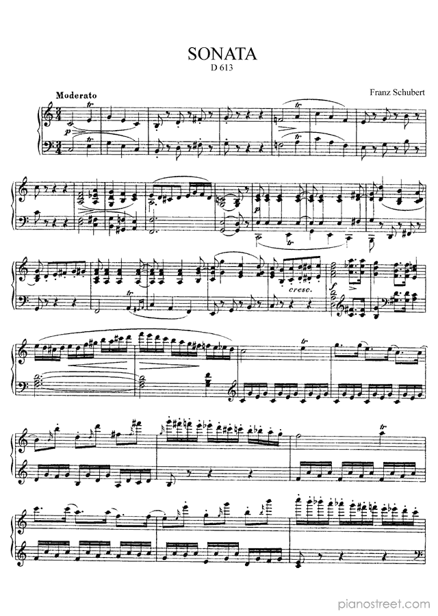 Sonata 10 D. 613 in C Major, a composition by the early romantic composer Franz Schubert who was born in 1797 and died in 1828. The piano score of this piece was first published in 1818 and is part of Schubert's Sonatas.