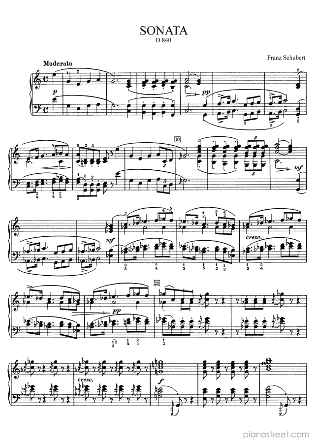Franz Schubert: Sonata 15 D. 840 in C Major from Sonatas - piano sheet music to print instantly. This piece is level 8+ and was composed during the Early Romantic period.