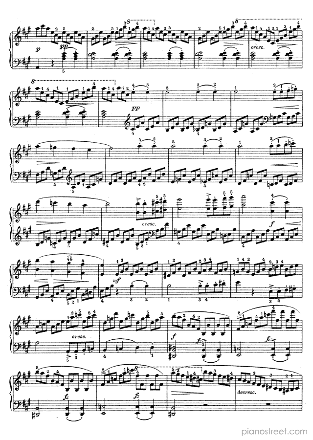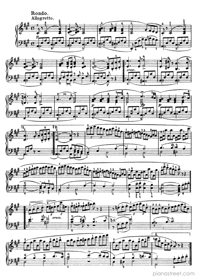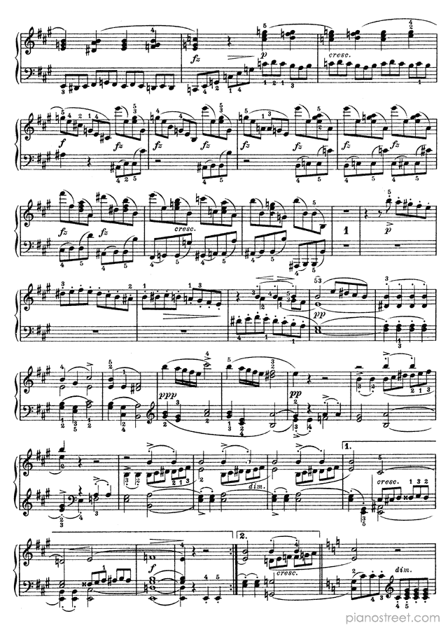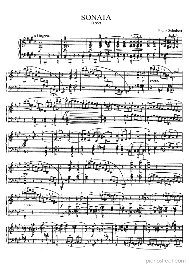Piano sheet music and recordings. This piece is from Sonatas by Franz Schubert: Sonata 20 D. 959 in A Major (published in 1828) . Level 8+, Period: Early Romantic
