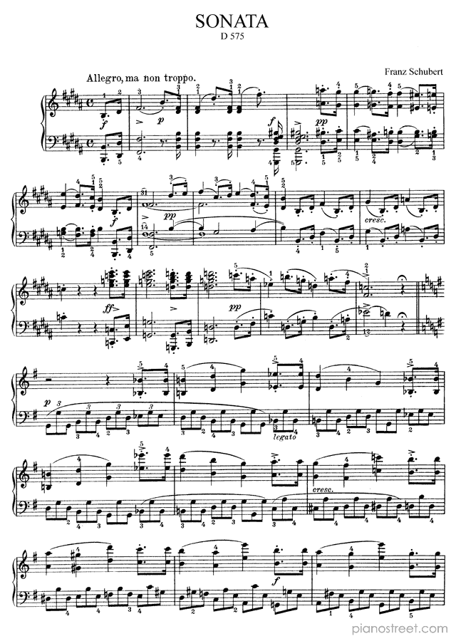 Downloadable piano sheet music from Sonatas by Franz Schubert to print: Sonata 9 Op. 147 D. 575 in B Major (published in 1817)