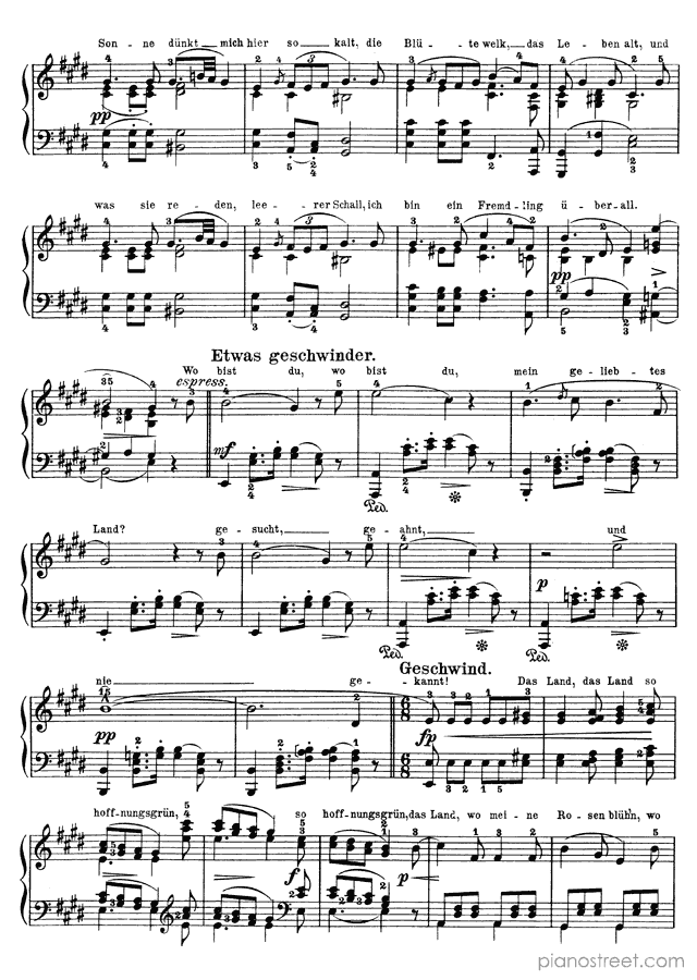 Franz Schubert - Songs (arranged by August Horn for solo piano):Der Wanderer - solo piano version