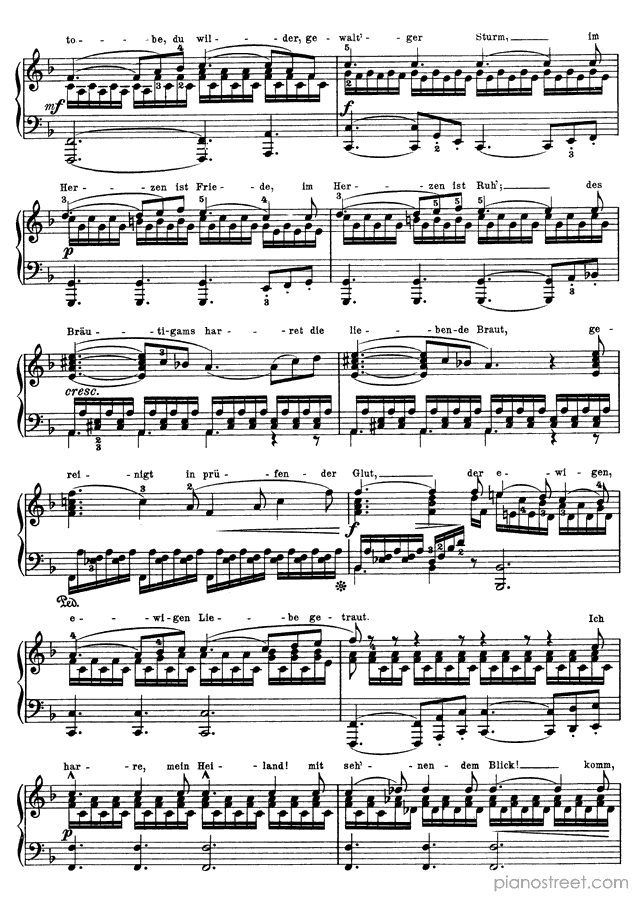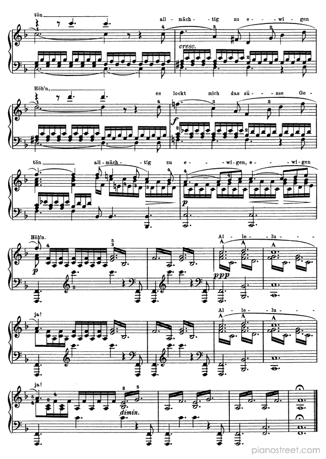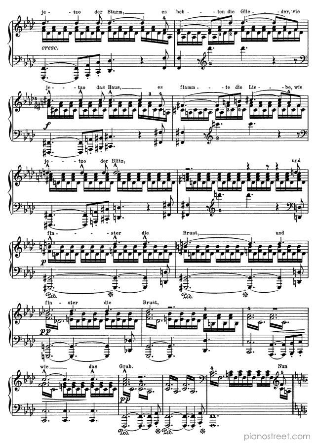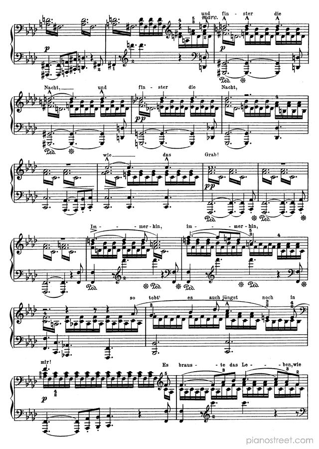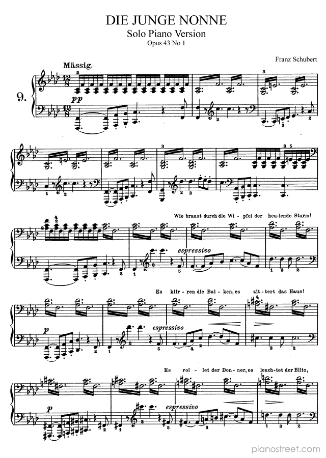 Downloadable piano sheet music from Songs by Franz Schubert to print: Die junge Nonne - solo piano version Op. 43 No. 1 in F Minor