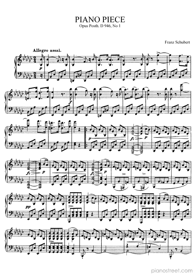 Schubert: Piano Piece No. 1 in E-flat Minor (published in 1828) . DOWNLOAD piano sheet music from Piano Street digital sheet music library.