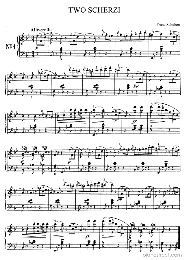 DOWNLOAD: Franz Schubert - Two Scherzi: no 1 in B-flat Major ( by Schubert). Piano sheet music to print immediately or to view in mobile devices.