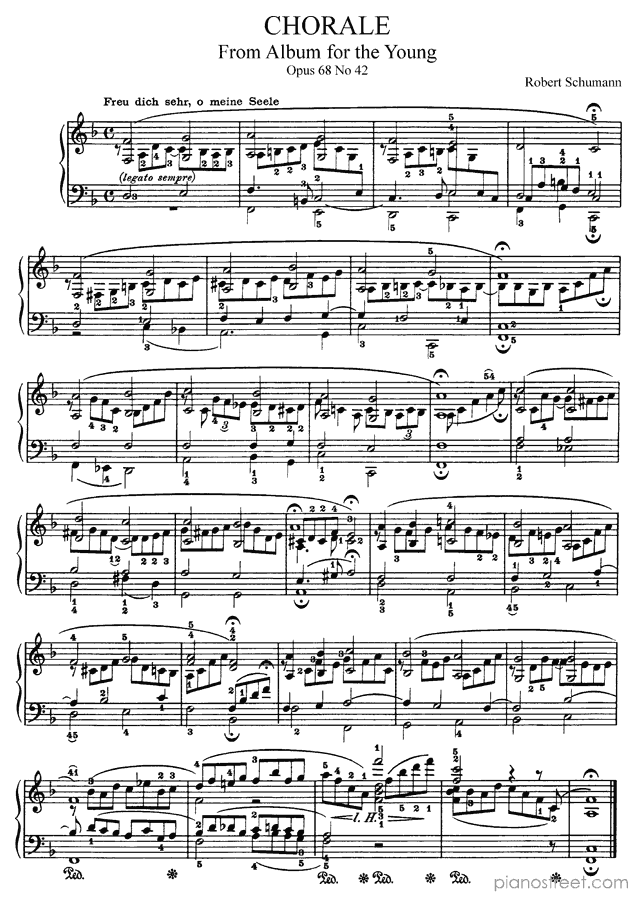 Robert Schumann: Chorale Op. 68 No. 42 in F Major from Album for the Young - piano sheet music to print instantly. This piece is level 5 and was composed during the Early Romantic period.