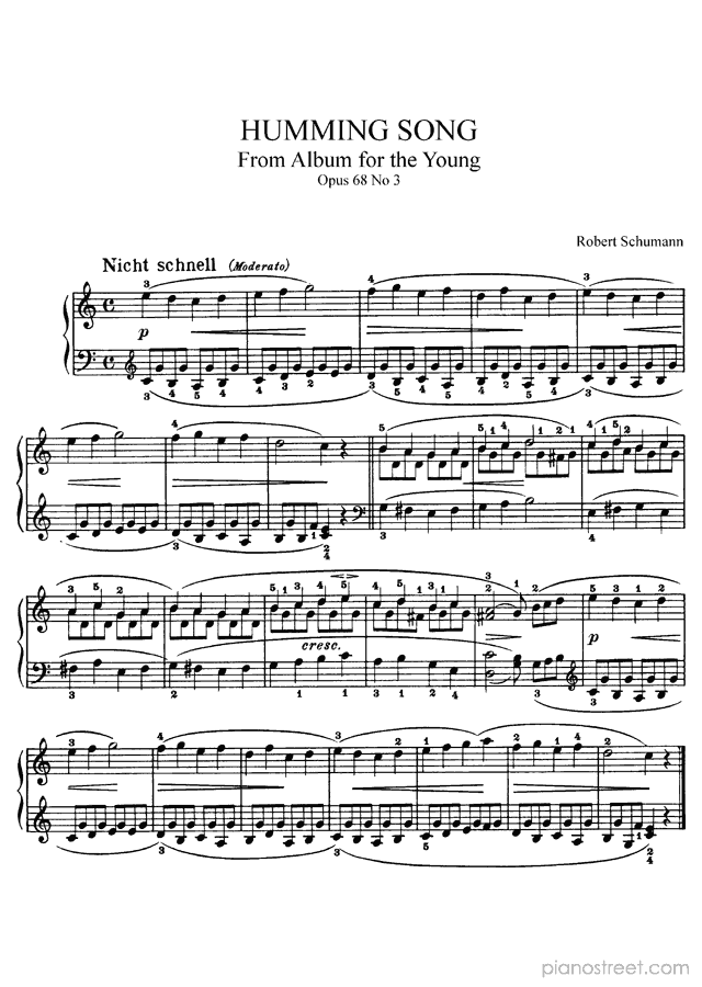Humming Song in C Major - Op. 68 No. 3 is a piano piece by the early romantic composer Robert Schumann who lived between the years 1810 and 1856.
