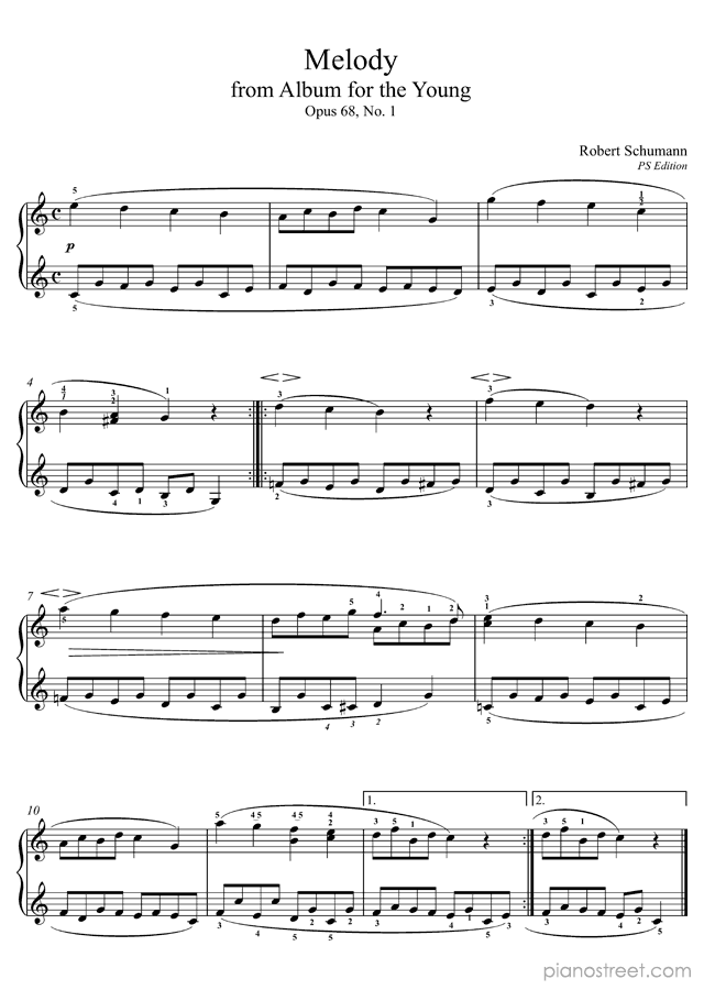 Schumann: Melody Op. 68 No. 1 in C Major (published in 1848) . DOWNLOAD piano sheet music from Piano Street digital sheet music library.