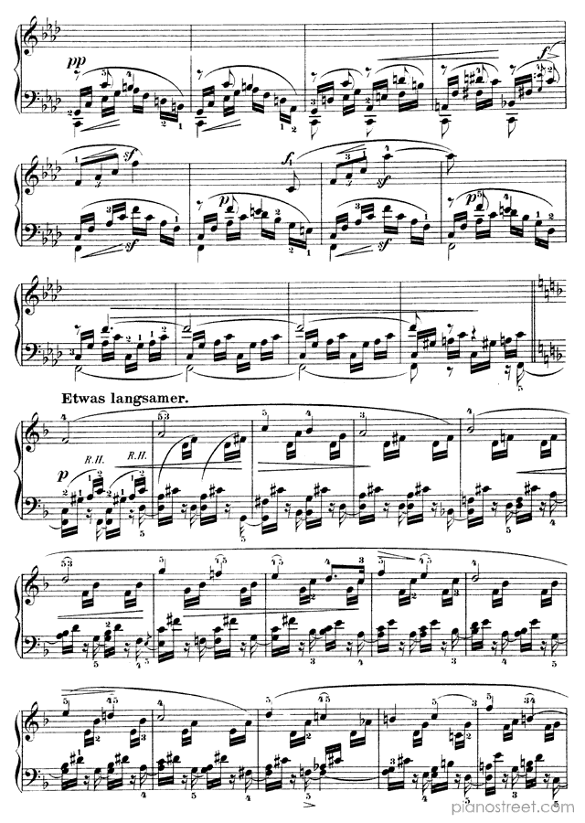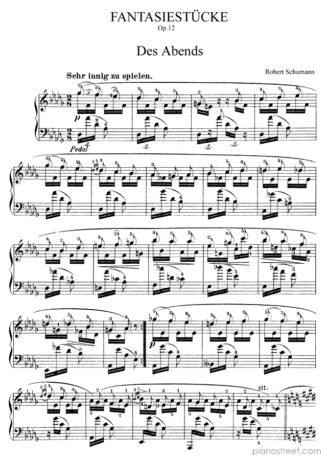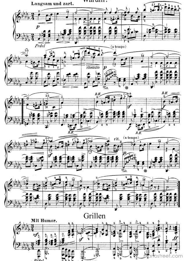 Downloadable piano sheet music from Fantasiestücke by Robert Schumann to print: Warum? Op. 12 No. 3 in D-flat Major (published in 1837)