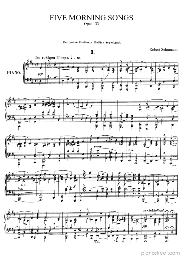 Morning Song in D Major - Op. 133 No. 2 is a piano piece by the early romantic composer Robert Schumann who lived between the years 1810 and 1856.