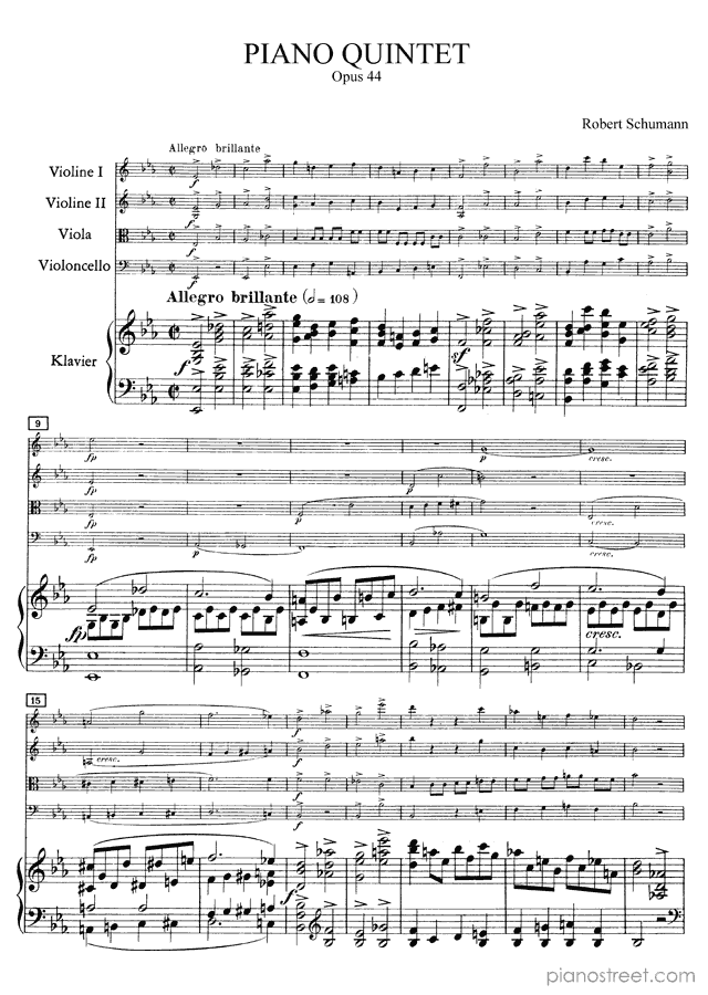 Schumann: Piano Quintet Op. 44 in E-flat Major (published in 1842) . DOWNLOAD piano sheet music from Piano Street digital sheet music library.